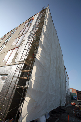 Industrial curtains, scaffolding tarps and building enclosures made from reinforced, lightweight, clear DuraShield(TM) 6000 keep wind and rain out of work spaces while letting necessary light through. Or use PlastiShield(TM) unsupported sheeting as simple dust partitions or lay-down tarps when you must maintain a clean environment. ThoroShield FR products are Mildew & Antimicrobial resistant